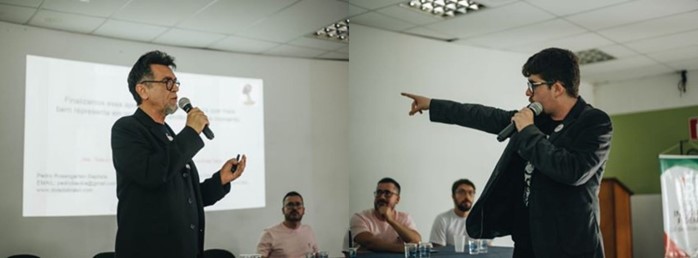 Sempre com ajuda de amigos, fizemos cursos de oratória no Instituto Passadori e outros, tudo para ganharmos mais segurança e dar principalmente ao Pedro a vivência do palco.